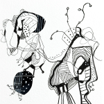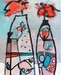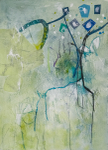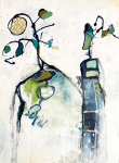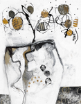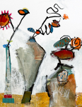 I always painted abstracts but the past few years, seem to be seeing flowers in my pieces. I don't want to...I want to make abstracts, but in spite of myself, they bloom on the paper. I do fight it...I don't know why....I actually really like them when they're done. I never know what kind of work I'll end up with. I just make marks and paint, cover things over, add some more and the pieces keep evolving as I go. So even though I want to move on from the flowers, they are weird flowers and that's what my head seems to see and want to make, so I'll just keep doing it till I start seeing frogs or something.